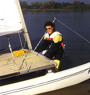 | Doch der läßt nicht mit sich scherzen! Plötzlich fegt eine Bö mit unbändiger Stärke über den See und reißt einen der beiden Catamarane nieder! |